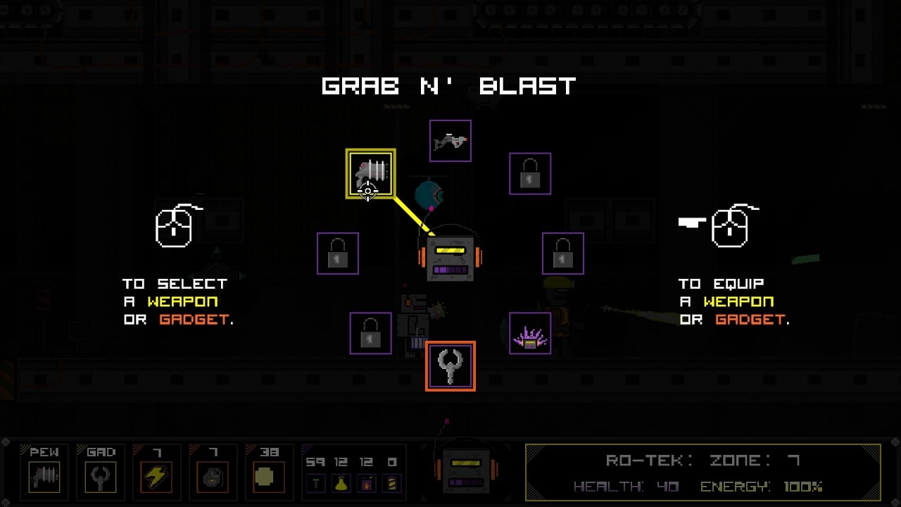Сражайтесь с многочисленными врагами. Движок завязан на физических свойствах каждого объекта, включая персонажей и элементы окружения. Все имеет свой вес, рассчитывается скорость, сила притяжения или трения и т.д. Героям Robozarro доступен специальный инструмент Grab N Blast, способный изменять физику объектов. При помощи пушки превращайте врагов и окружающие предметы во взрывоопасное оружие!